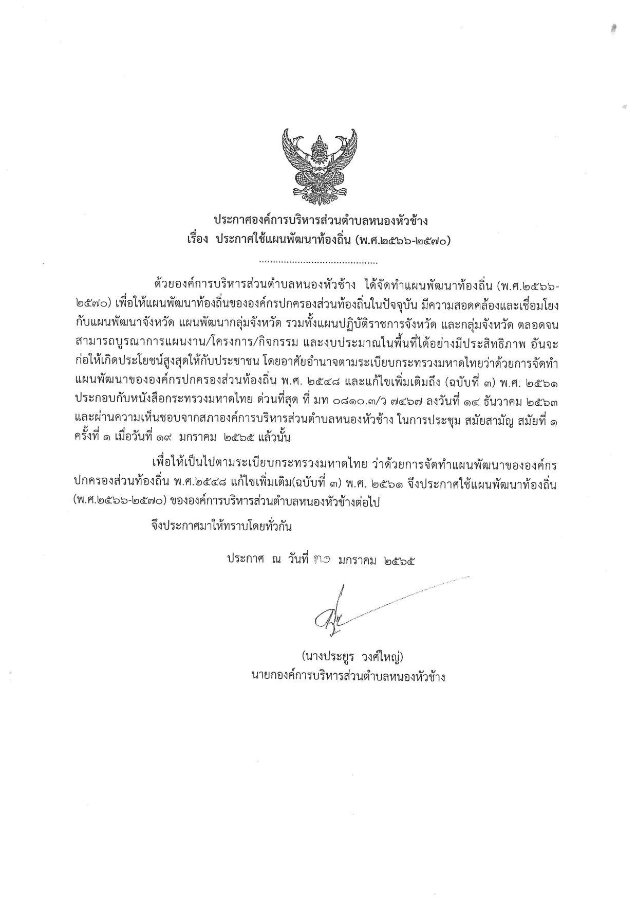 วันจันทร์, 31 มกราคม 2565 10:47แผนพัฒนาท้องถิ่น (พ.ศ.2566-2570) องค์การบริหารส่วนตำบลหนองหัวช้าง อำเภอกันทรารมย์ จังหวัดศรีสะเกษ