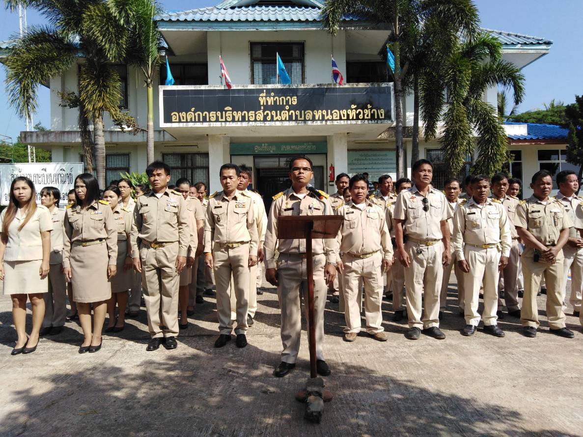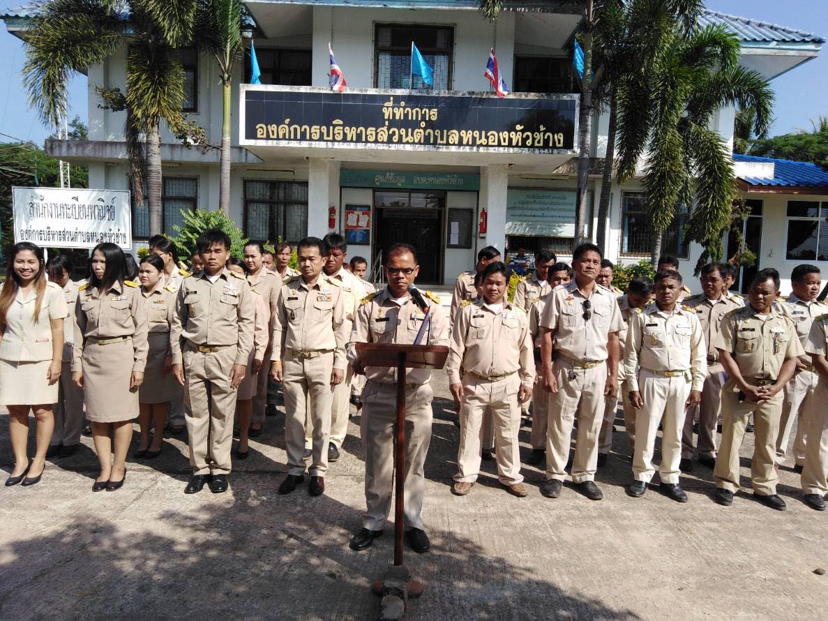 วันอังคาร, 06 พฤศจิกายน 2561 14:32องค์การบริหารส่วนตำบลหนองหัวช้าง นำโดย นายสมคิด แก่นคำ ปลัดองค์การบริหารส่วนตำบล ปฏิบัติหน้าที่ นายกองค์การบริหารส่วนตำบล พร้อมด้วย นายทินกร มังสา ประธานสภาองค์การบริหารส่วนตำบลหนองหัวช้าง สมาชิกสภาองค์การบริหารส่วนตำบลหนองหัวช้าง พนักงานส่วนตำบล พนักงานจ้างฯ ได้ร่วมกันแสดงออกเชิงสัญลักษณ์ กิจกรรมการป้องกันและต่อต้านการทุจริตคอร์รัปชั่น ขององค์การบริหารส่วนตำบลหนองหัวช้าง ประจำปีงบประมาณ ๒๕๖๒ ณ องค์การบริหารส่วนตำบลหนองหัวช้าง อำเภอกันทรารมย์ จังหวัดศรีสะเกษ