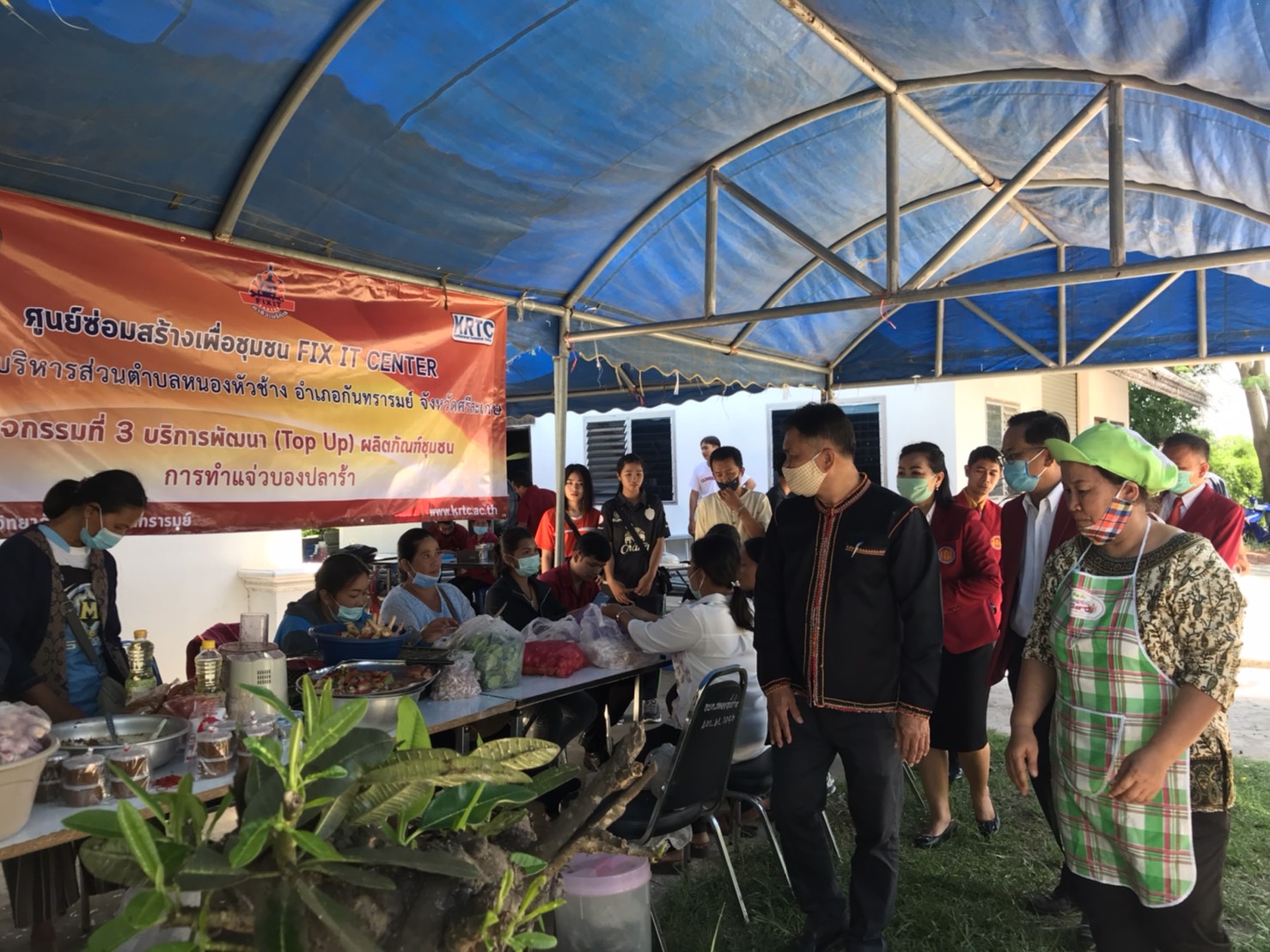 3. กิจกรรมบริการพัฒนา (TOP Up) ผลิตภัณฑ์ชุมชน การแปรรูปผลผลิตของชุมชน การเพิ่มมูลค่าผลิตภัณฑ์ชุมชน ส่งเสริมมาตรฐานการรับรองคุณภาพ และจัดอารมโดยวิทยากรผู้เชี่ยวชาญหรือครูร่วมกับนักเรียน นักศึกษา