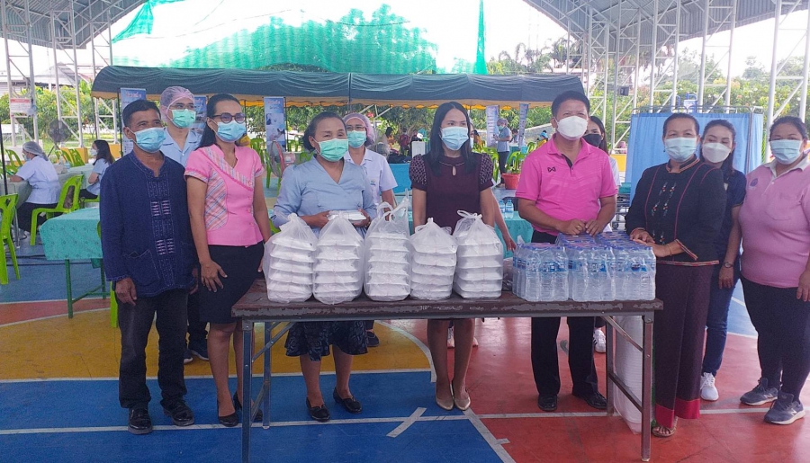 องค์การบริหารส่วนตำบลหนองหัวช้าง ได้มอบข้าวกล่องและน้ำดื่มให้กับทีม จทน.ที่ฉีดวัคซีนให้กับประชาชนที่มารับบริการฉีดวัคซีน