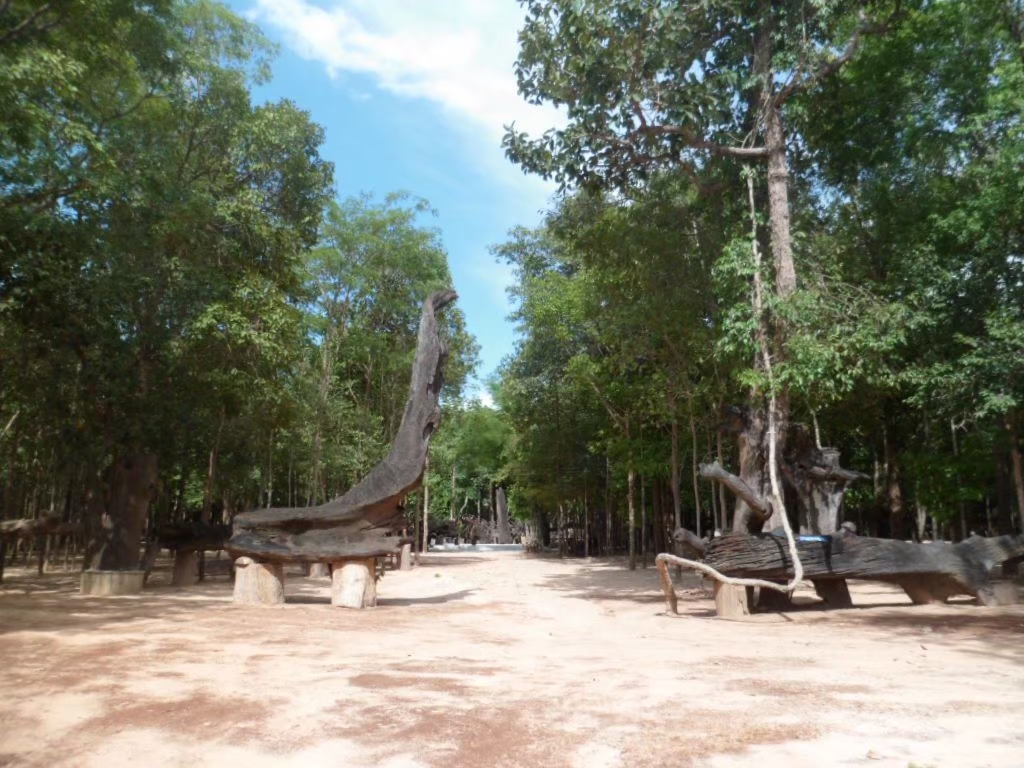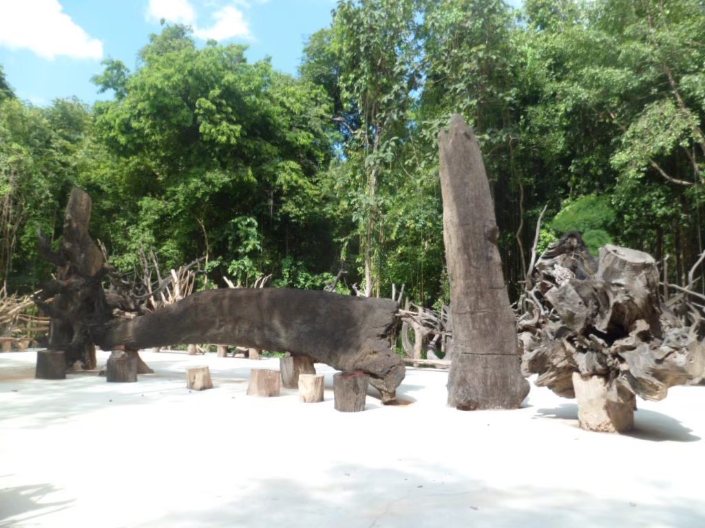 วัดป่าคำเจริญ บ้านบกขี้ยาง ตำบลหนองหัวช้าง อำเภอกันทรารมย์ จังหวัดศรีสะเกษ ที่ลำห้วยขะยูง บ้านบกขี้ยาง ต.หนองช้าง อ.กันทรารมย์ จ.ศรีสะเกษ ชาวบ้านในละแวกดังกล่าวได้พยายามช่วยกันนำเอาไม้ตะเคียนทองยักษ์ ขนาดประมาณ 3 คนโอบ ขึ้นจากลำน้ำที่ไหลเชี่ยวและลึก ชาวบ้านเชื่อว่าไม้ดังกล่าวเป็นไม้ศักดิ์สิทธิ์ และมีวิญญาณเจ้าแม่ตะเคียน สิงอยู่ โดยนำไปเก็บรักษาไว้ที่ วัดป่าคำเจริญ มีพระอาจารย์สว่าง กัลป์ยาโณ เป็นเจ้าอาวาส ทั้งนี้ เพื่อต้องการนำเอาไม้ดังกล่าวไปไว้ให้ชาวบ้านได้กราบไหว้ เพื่อความเป็นสิริมงคล ตามความเชื่อของชาวบ้าน ก่อนหน้านี้ มีชาวบ้านนำไม้ตะเคียนยักษ์ จากลำห้วยขะยูงนี้ และนำขึ้นมาเก็บรักษาไว้ที่วัดแห่งนี้พระอาจารย์สว่าง กัลยาโณ เจ้าอาวาสวัดป่าคำเจริญ กล่าวว่า ไม้ตะเคียนทองยักษ์ท่อนนี้ คาดว่ามีอายุประมาณ 600 - 1,000 ปี คิดว่า คงมีคนตัดไว้แล้วนำไม้ส่วนที่เหลือไปขาย เพราะไม้ชนิดนี้เป็นไม้ที่มีเนื้อดี ทนแดด ทนฝน และมีเนื้อสวยงามมาก ซึ่งจะได้จัดสร้างพิพิธภัณฑ์ไม้ตะเคียน เพื่อจะได้เป็นแหล่งศึกษาหาความรู้เรื่องไม้ตะเคียนให้กับลูกหลาน ชาวบ้าน และประชาชนทั่วไปที่สนใจในเรื่องนี้ต่อไป
