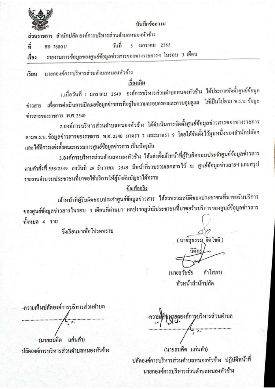 วันพุธ, 05 มกราคม 2565 10:16รายงานข้อมูลศูนย์ข้อมูลข่าวสารของทางราชการ รวบรวมสถิติของประชาชนที่มาขอรับบริการของศูนย์ข้อมูลข่าวสารในรอบ 3 เดือน ที่ผ่านมา